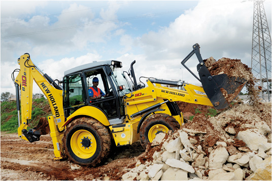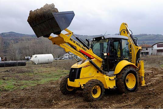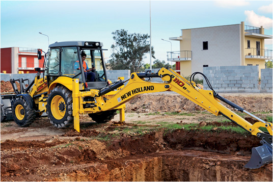 První rypadlo nakladače začal New Holland vyrábět v r. 1966 v USA ještě pod označením FORD, to znamená, že v tomto segmentu strojů má již 45 let zkušeností. Rypadlo nakladače New Holland LB jsou osazeny moderními motory New Holland o výkonech 100 a 112 koní, splňují emisní normu TIR III a umožňují vysoký pracovní výkon při práci i dopravě. Dodávány jsou dva typy převodovek, mechanicky řazená "PowerShuttle" a plně řazená pod zatížením s možností automatického řazení "PowerShift". Obě jsou vybavené elektrohydraulickým ovládáním reversu, měničem kroutícího momentu a maximální pojezdovou rychlostí 40 km/h. Hydraulický systém je osazen novým regulačním pístovým čerpadlem Danfos o výkonu až 165 l/min., s regulací průtoku LOAD SENSING zaručuje rychlost a koordinaci všech pohybů současně při významném snížení spotřeby paliva.